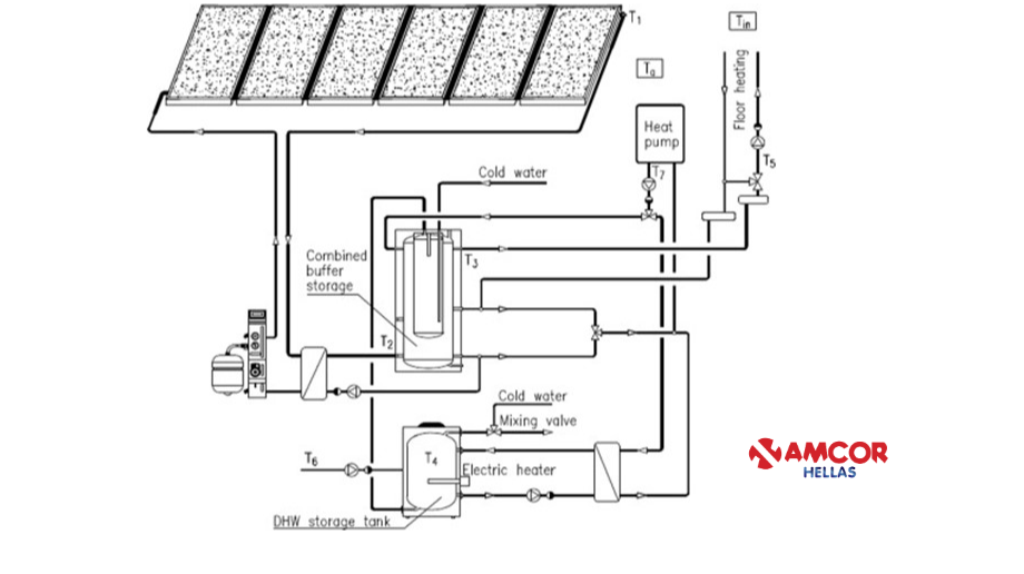 - Συλλέκτες AMCOR υψηλής απόδοσης: απορροφούν την ηλιακή ακτινοβολία και μετατρέπουν την ενέργεια σε θερμότητα.